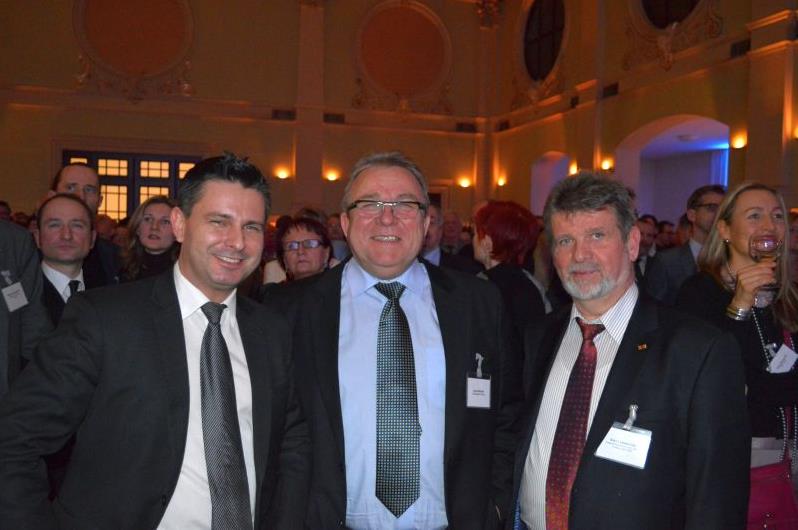 (kolobrzeg.de Redakteur: Raphael Rojek mit Bürgermeister Gromek und dem Mtiglied des Berliner Abgeordentenhauses, Alex Lubawinski/SPD)